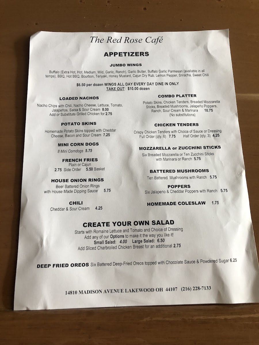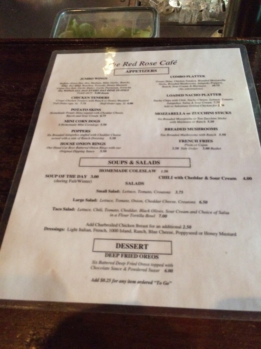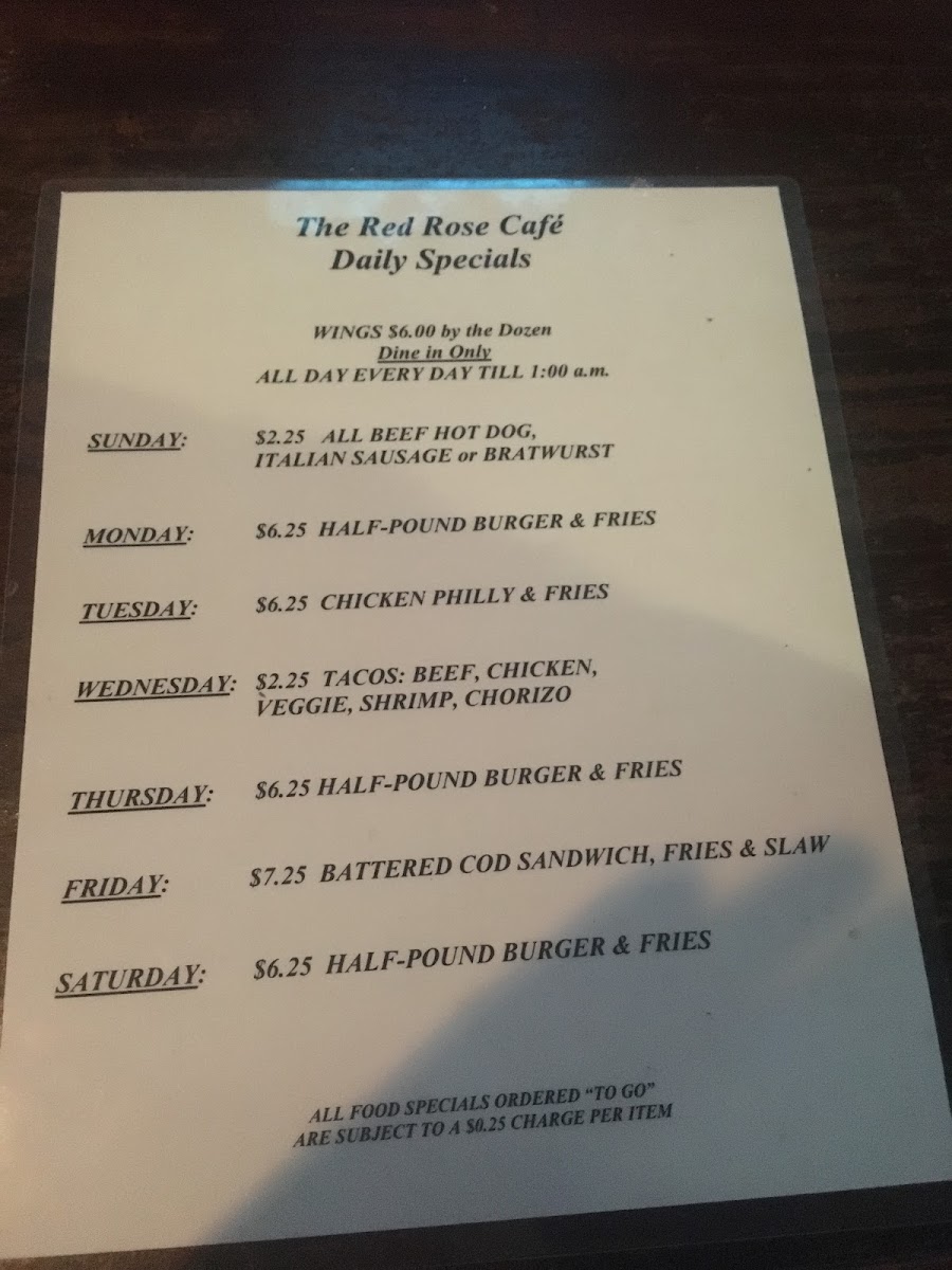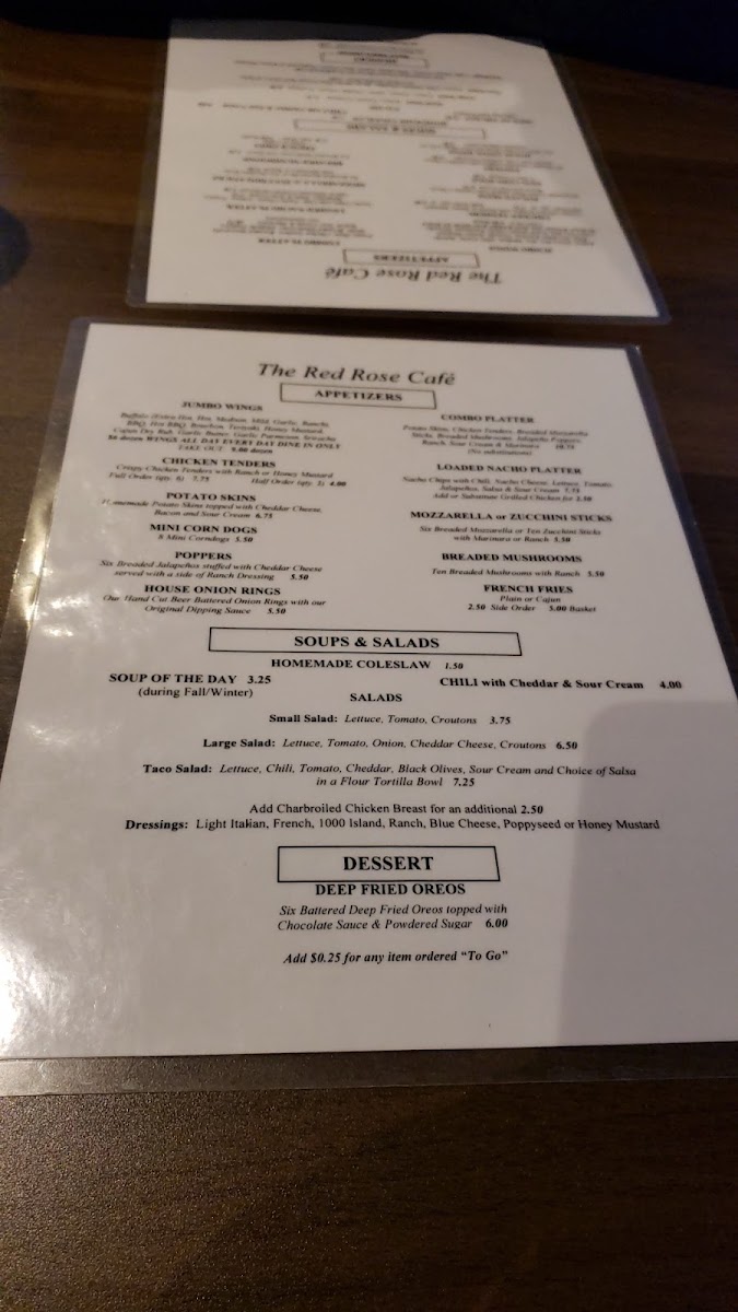 The Red Rose Cafe Menu